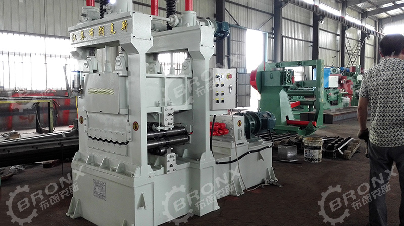 本機(jī)床為輥式金屬板料整平專用設(shè)備,通常由動(dòng)力、主機(jī)和電器控制等部分組成。利用材料的包辛格效應(yīng),使板料在上、下校平輥之間反復(fù)變形,消除應(yīng)力達(dá)到校平的目的。在上、下排工作輥外側(cè),設(shè)剛性支撐輥(輪),構(gòu)成四重式組輥結(jié)構(gòu)。板料通過本機(jī)校平,可明顯改善其平整狀態(tài),提高工件的質(zhì)量。可獨(dú)立工作,用于單塊板材的校平;亦可在本機(jī)前配置開卷、引料,后面配置剪切、垛料及聯(lián)機(jī)機(jī)構(gòu)等,通過控制系統(tǒng)連成性能完備的生產(chǎn)線,對(duì)金屬卷材進(jìn)整平、分切。