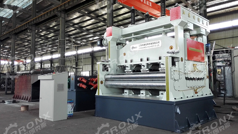 本機(jī)床為輥式金屬板料整平專用設(shè)備,通常由動力、主機(jī)和電器控制等部分組成。利用材料的包辛格效應(yīng),使板料在上、下校平輥之間反復(fù)變形,消除應(yīng)力達(dá)到校平的目的。在上、下排工作輥外側(cè),設(shè)剛性支撐輥(輪),構(gòu)成四重式組輥結(jié)構(gòu)。